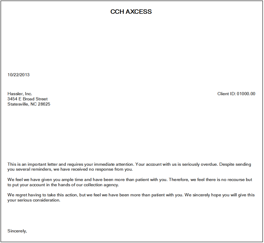 Collection Letters Sample Report